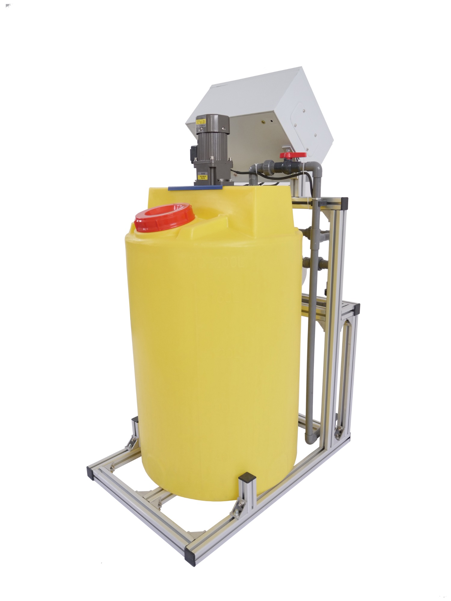 該款水肥機為單路施肥通道設計,配備 200LPE 桶,可選配攪拌電機進行肥料攪拌,最大注肥量600L/ 小時;可以設定灌溉時長,經濟實惠。